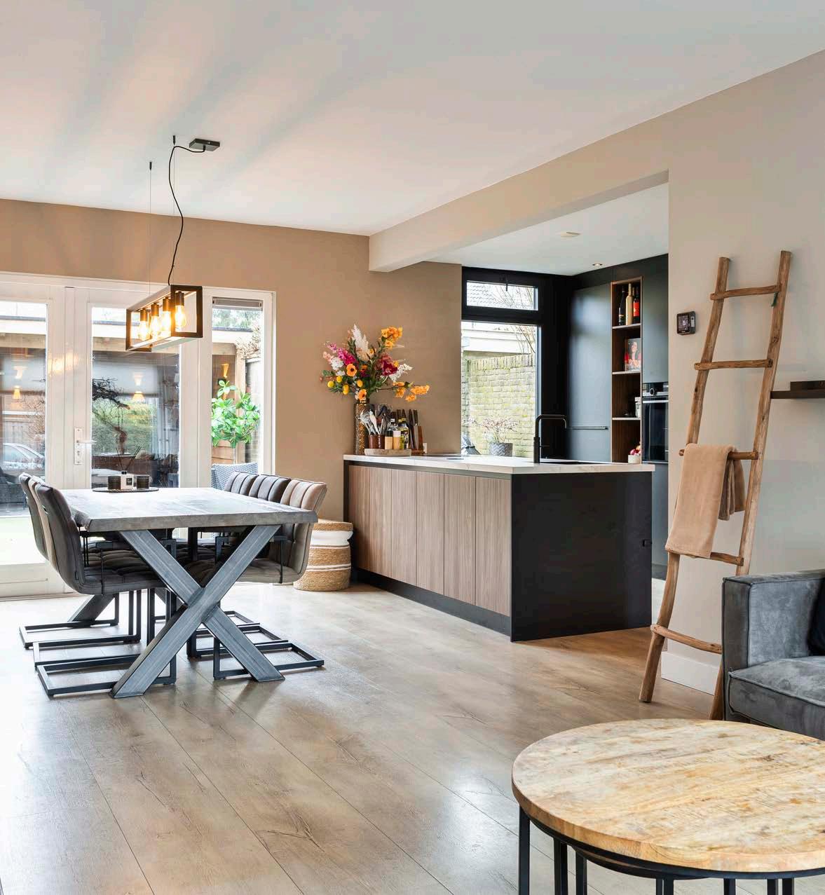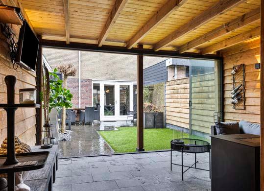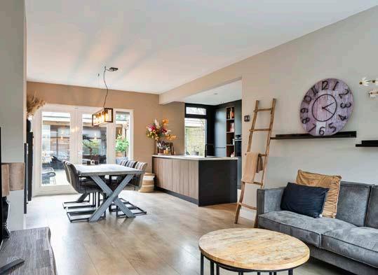We zijn trots op onze nieuwe leef keuken die de kamer een stuk groter maakt. Door de vele ramen hebben we veel natuurlijk licht in ons huis. Doormiddel van de openslaande deuren stap je onze tuin in met daarbij een grote veranda met glazen wand. Dit ervaren wij als een tweede woonkamer omdat we het hier heerlijk warm kunnen maken met de palletkachel.