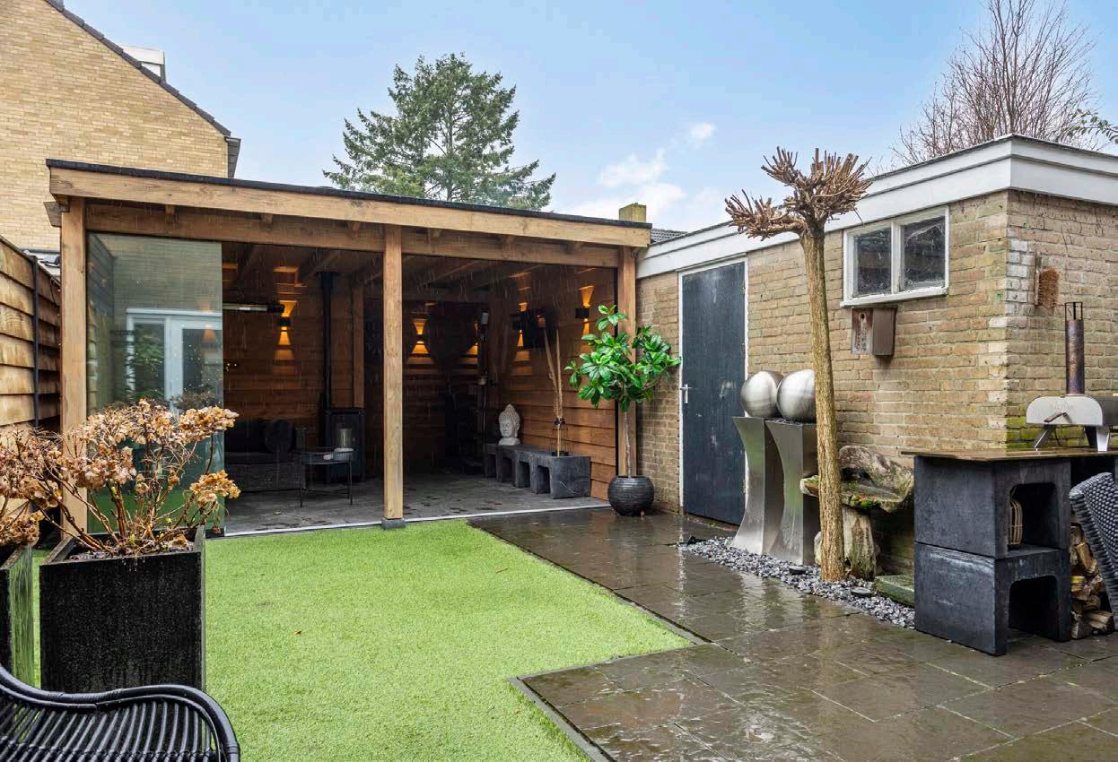 Stap naar buiten en ontdek de zonnige tuin, gelegen op het zuidoosten. Hier kun je genieten van de ochtendzon met een kop koffie, of ‘s avonds ontspannen onder de fraaie royale veranda. Deze veranda is een echte aanwinst voor het huis, waardoor je het hele jaar door van de buitenruimte kunt genieten. Het biedt beschutting tegen de elementen en creëert een gezellige plek voor een barbecue, een bijeenkomst met vrienden, of gewoon een moment van rust. De tuin biedt voldoende ruimte voor kinderen om te spelen of om je groene vingers aan het werk te zetten.