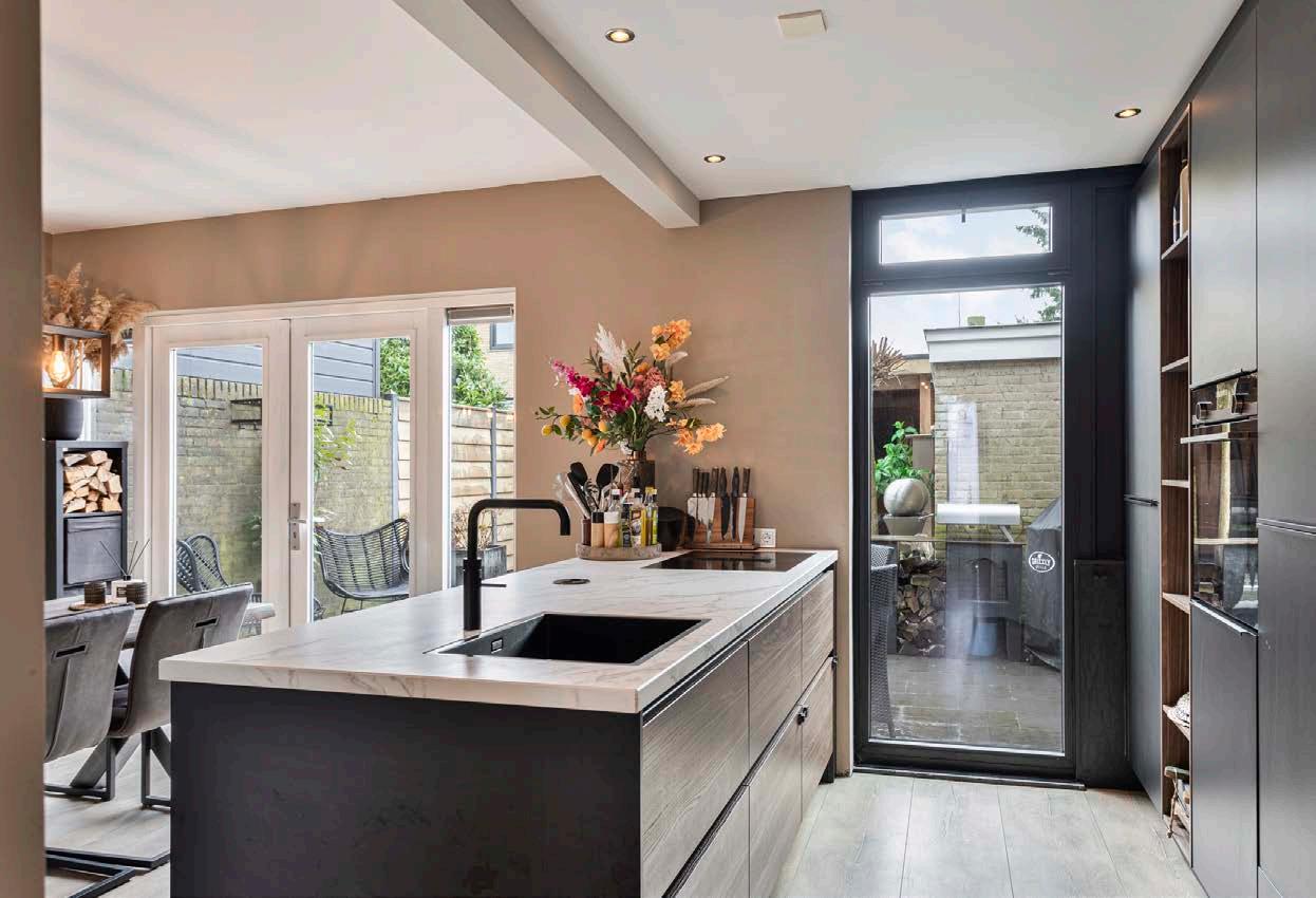 De open keuken, die in 2023 volledig is vernieuwd, biedt moderne apparatuur en veel werkruimte op het schiereiland. De keuken is voorzien van een koel-/vriescombatie, combi-oven, vaatwasmachine, vierpits inductiekookplaat met ingebouwde afzuiging, spoelbak met heetwaterkraan en enorm veel opbergruimte. Dit maakt het niet alleen een functionele, maar ook een gezellige plek om te koken en te eten. Denk aan gezellige kookavonden met vrienden of een snel ontbijt op doordeweekse ochtenden. De keuken is het hart van de woning, een plek waar functionaliteit en stijl hand in hand gaan.
