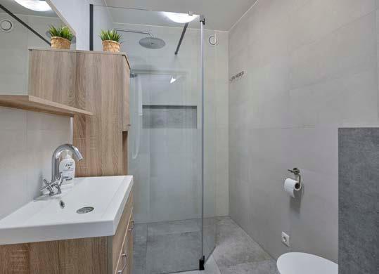 De moderne badkamer op de begane grond is een grote plus: met een luxe inloopdouche, prachtig wastafelmeubel en een tweede toilet wordt zelfs de ochtendspits plezierig.