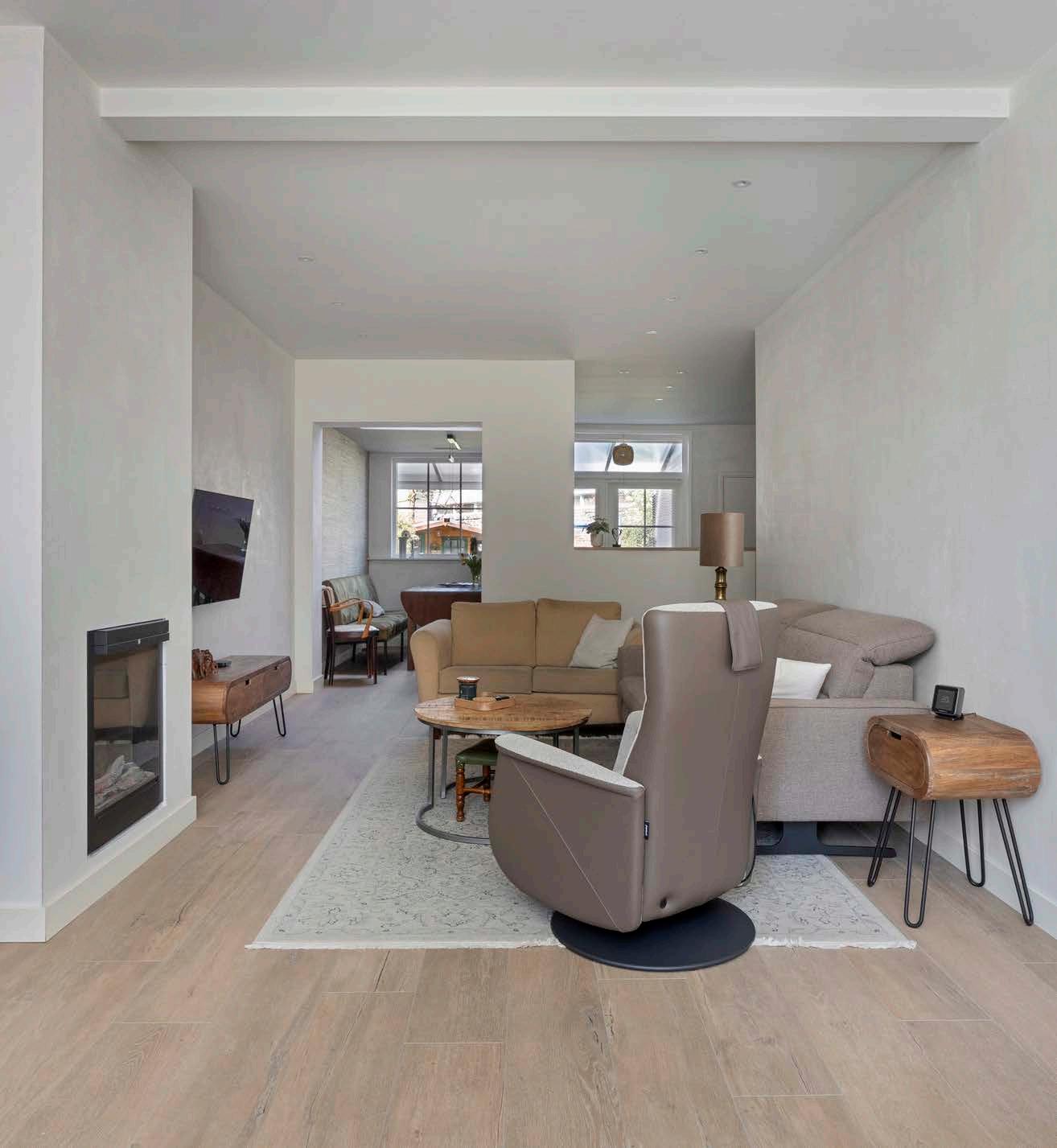 De benedenverdieping is smaakvol gerenoveerd en heeft een neutrale afwerking.