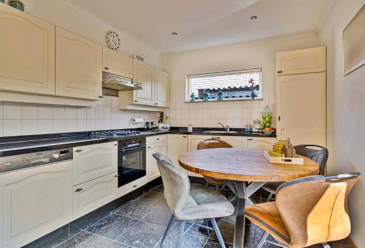 De begane grond is royaal van opzet en biedt veel mogelijkheden om de ruimtes naar eigen wens vorm te geven. Een open leefkeuken behoort tot de opties, maar ook in de huidige indeling zijn de zit- en eethoek prettig gescheiden en ruimtelijk.