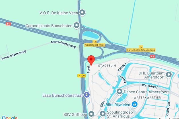 Vanuit Nieuwland ben je binnen enkele minuten op de A1 en A28.