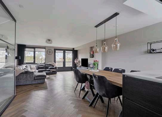 De open moderne keuken is uitgerust met hoogwaardige inbouwapparatuur, waaronder een gaskookplaat, stoomoven, koelkast, combi-oven/ magnetron, vaatwasser en een handige Quooker. De stijlvolle plavuizenvloer zorgt voor een luxe uitstraling en is gemakkelijk schoon te maken. Welk gerecht maak jij klaar?