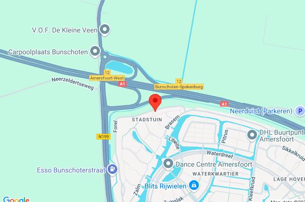 Vanuit Nieuwland ben je binnen enkele minuten op de A1 en A28.