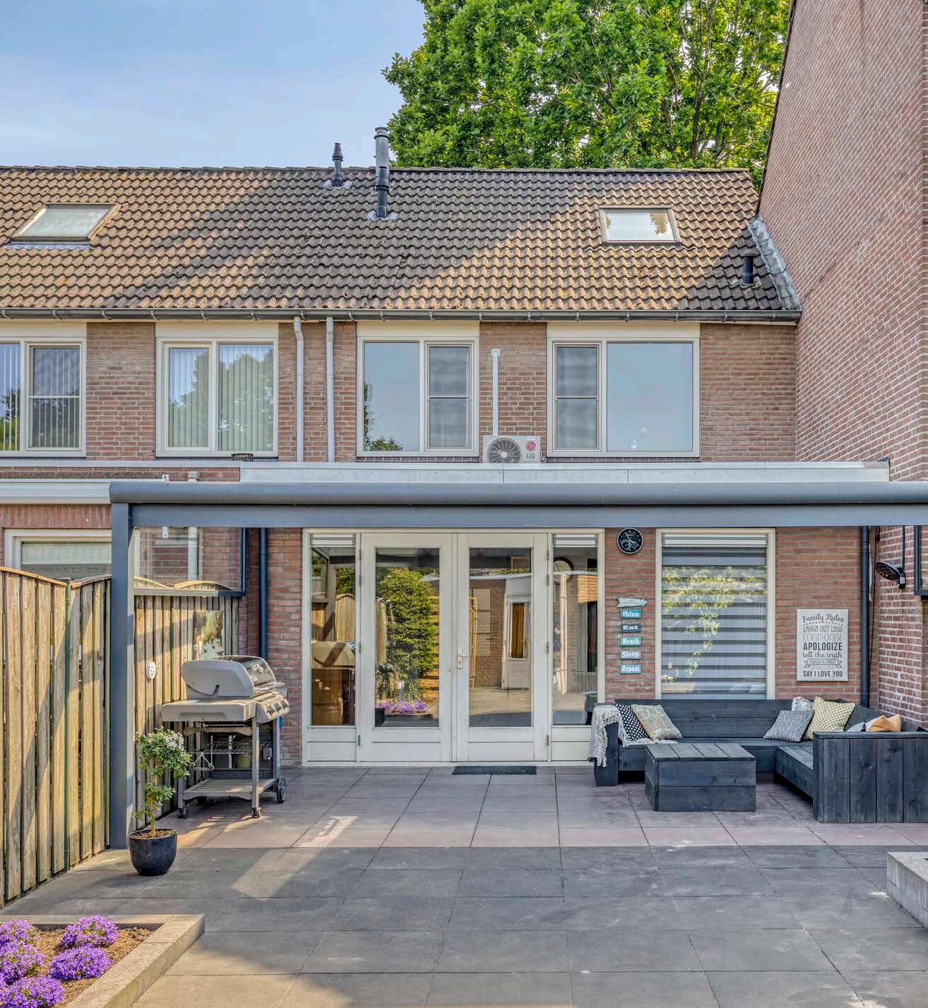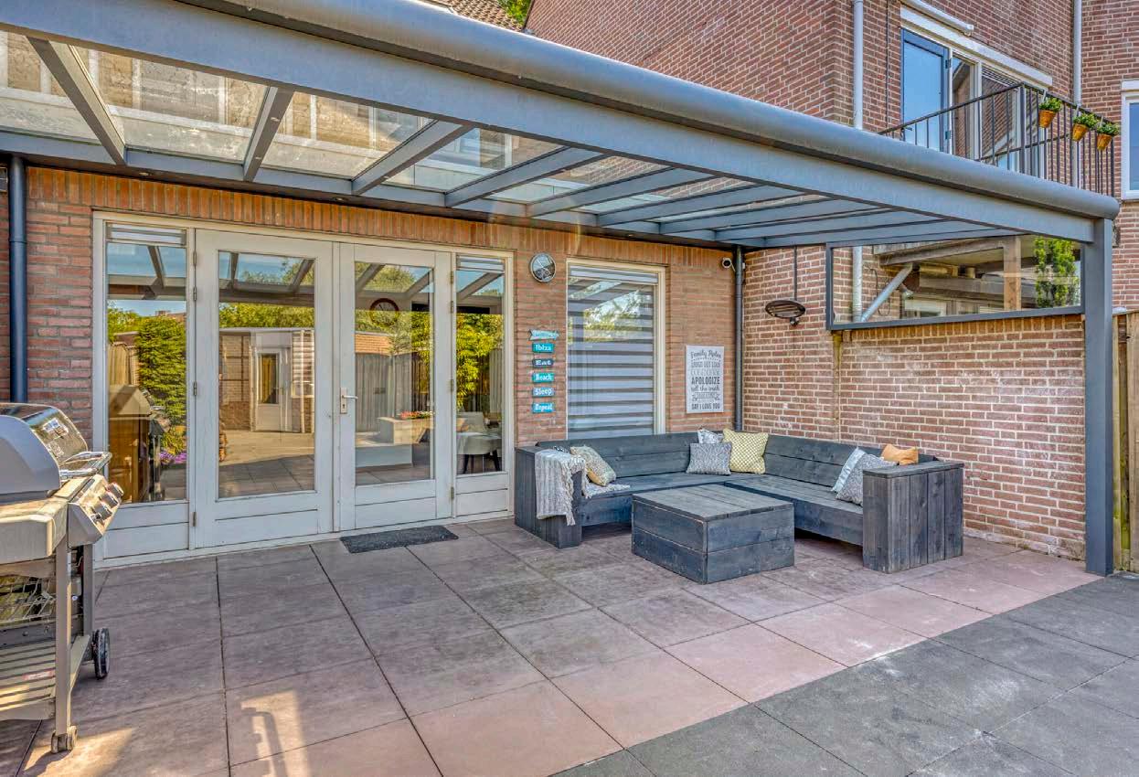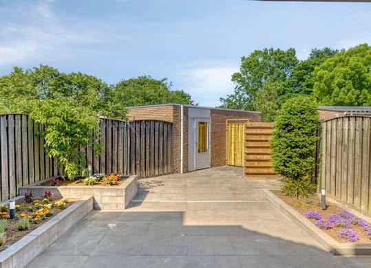 De onderhoudsvrije achtertuin is fraai aangelegd en beschikt over een royale aluminium overkapping met verlichting – perfect voor lange avonden buiten. Achterin bevindt zich een vrijstaande garage en een handige achterom. Dankzij de slimme situering van omliggende woningen geniet je hier van optimale privacy, zonder directe inkijk van achter- of buren.