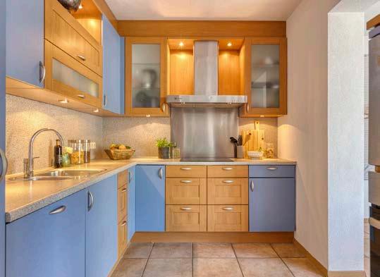 De open keuken is praktisch ingedeeld en goed onderhouden. Deze is uitgerust met diverse inbouwapparatuur zoals een inductiekookplaat, afzuigkap, koelkast, vaatwasser, aparte oven, magnetron en volop kastruimte. Daarnaast is er een ruime provisiekast met aansluitingen voor extra apparatuur én de unit voor de vloerverwarming.