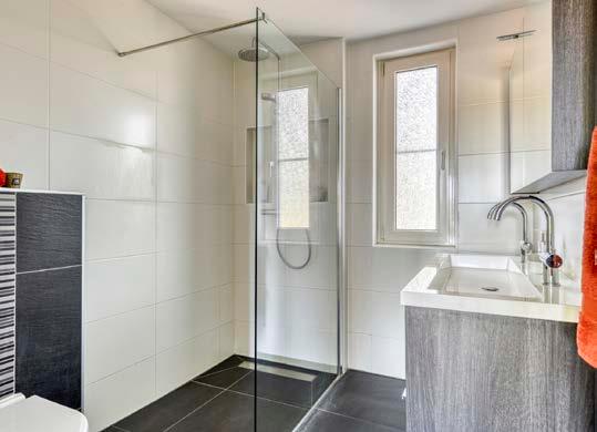 De overloop geeft toegang tot drie ruime slaapkamers, elk voorzien van een laminaatvloer met hoge plinten en een strakke afwerking. De geheel betegelde badkamer is modern uitgevoerd en beschikt over een inloopdouche, een dubbel wastafelmeubel, toilet én elektrische vloerverwarming voor extra comfort.