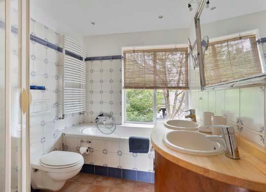 Op de eerste verdieping bevinden zich drie slaapkamers, waarvan twee met praktische vaste kasten. De badkamer is compleet uitgerust met een ligbad (whirlpool met douchefunctie), aparte douchecabine, hangend tweede toilet, dubbele wastafel in meubel, grote spiegel met verlichting, designradiator en plafondspots.