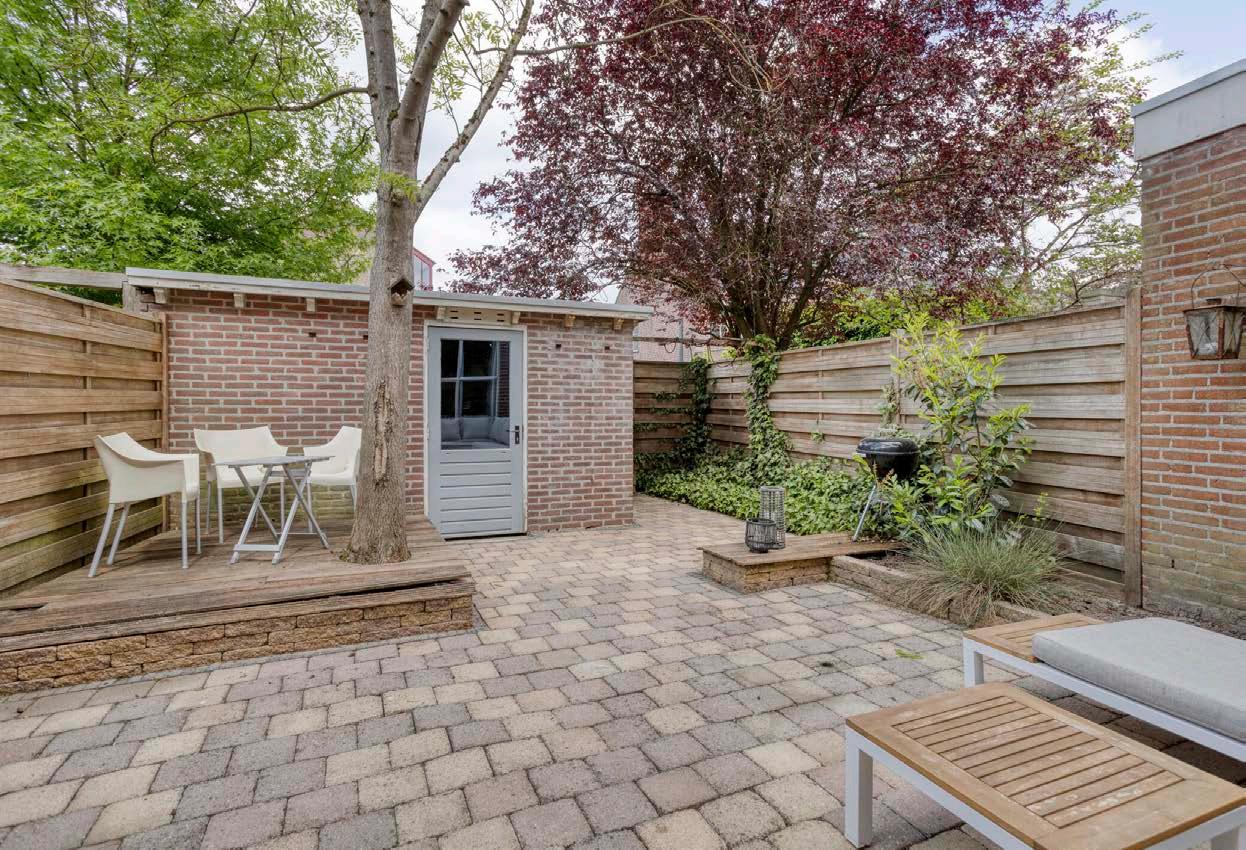 De achtertuin is onderhoudsvriendelijk aangelegd, biedt veel privacy, beschikt over een achterom en een separate stenen berging.
