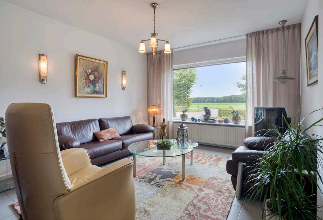 De woonkamer voelt licht en ruim dankzij de grote raampartijen die de zon uitnodigen om overal binnen te vallen. De zachte lichtinval maakt dit de perfecte plek om samen te ontspannen, een goed boek te lezen of gewoon te genieten van jouw uitzicht richting het groen