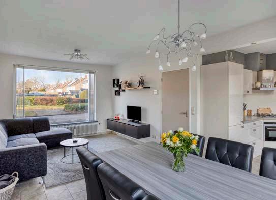 De zonnige woonkamer is dé plek om met familie of vrienden neer te ploffen op de bank. Dankzij de grote ramen stroomt er heerlijk veel daglicht naar binnen, waardoor de hele ruimte een frisse en uitnodigende uitstraling heeft. De open en overzichtelijke indeling zorgt ervoor dat je je meteen welkom voelt. Vanuit de woonkamer kijk je zo uit op de achtertuin, die met zorg is aangelegd en uitnodigt om buiten te ontspannen. En heb je groene vingers? Dan is dit dé plek om je tuinierdromen waar te maken.
