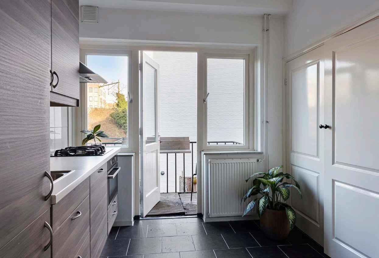 Ook fijn aan dit huis: De twee balkons. Aan de voorkant kun je heerlijk mensen kijken met een kop koffie of een glas wijn, op 1 hoog niemand die je ziet terwijl de straat bruist van het leven. Aan de achterkant is het juist rustig, en kijk je zelfs uit op wat groen.