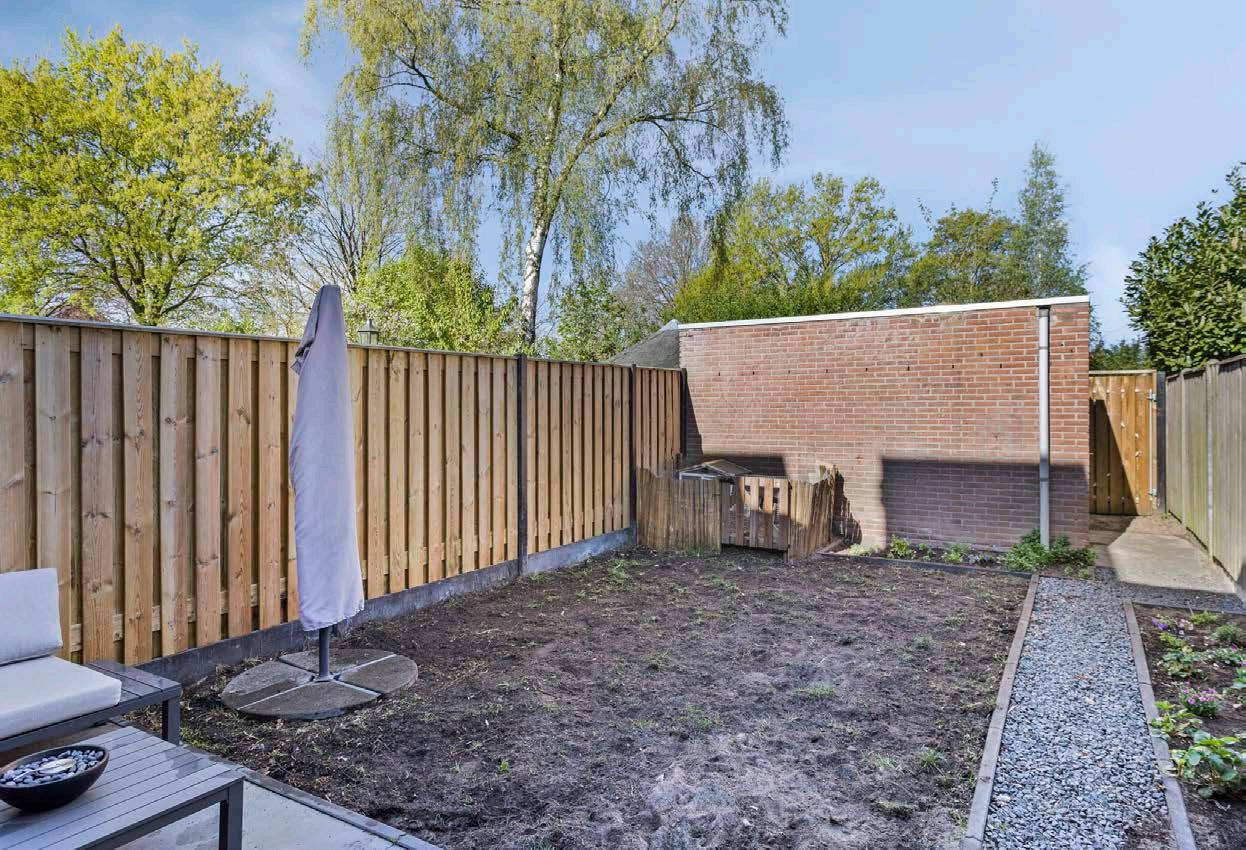 De achtertuin is gelegen op het westen en biedt daarmee zon in de middag en vroege avond. De tuin is bereikbaar via de deur vanuit de woonkamer en via de achterpoort gelegen aan het speeltuintje. Er is voldoende ruimte voor het plaatsen van een zitgedeelte, speeltoestellen of bijvoorbeeld een tuinhuis. Achterin de tuin bevindt zich een berging, ideaal voor fietsen, tuinmeubilair of gereedschap.