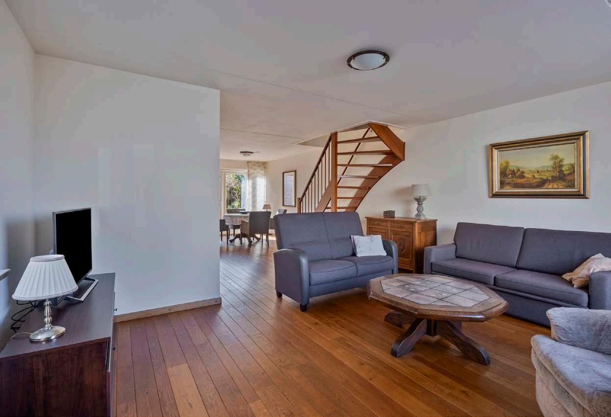 De voormalige garage is omgebouwd tot een extra slaapkamer met een eenvoudige badkamer op de begane grond. Dit maakt het huis ideaal voor mensen die gelijkvloers willen wonen of een gastenkamer nodig hebben voor familie en vrienden. De flexibiliteit van deze extra ruimte biedt tal van mogelijkheden, van een thuiskantoor tot een hobbykamer.