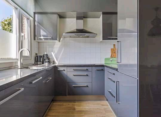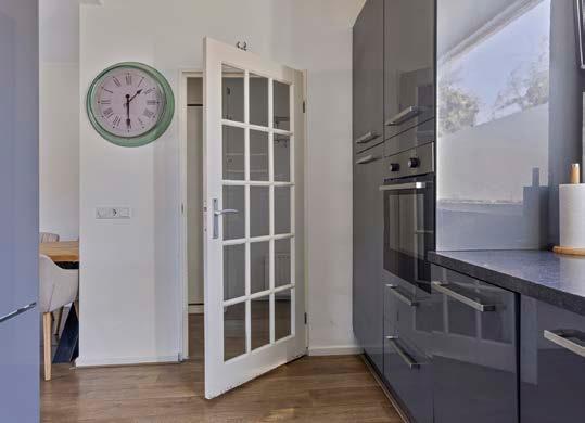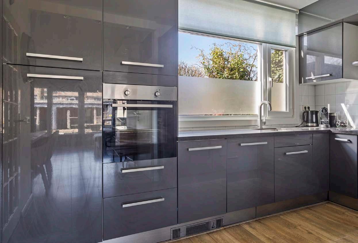 De keuken, modern en functioneel, nodigt uit tot koken en is een centrale ontmoetingsplek binnen het huishouden. De keuken is voorzien van een koel-/vriescombatie, combi-oven, vaatwasmachine, inductiekookplaat met afzuigunit, spoelbak en enorm veel opbergruimte. Dit maakt het niet alleen een functionele, maar ook een gezellige plek om te koken en te eten.