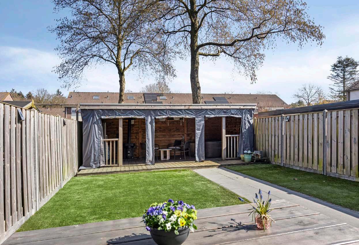 De achtertuin, gelegen op het oosten, biedt zowel zonne- als schaduwplaatsen gedurende de hele dag. Of je nu een enthousiast tuinier bent of juist op zoek naar een lichte plek om met familie en vrienden te ontspannen, de tuin faciliteert het allemaal. Het is een plek waar de kinderen veilig kunnen spelen en waar je ‘s ochtends de eerste zonnestralen met je kopje koffie kunt opvangen. De veranda biedt een heerlijke plek om uit de wind of uit de zon te kunnen genieten van de buitenlucht.