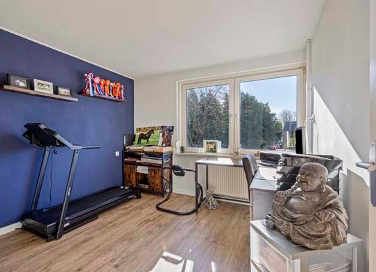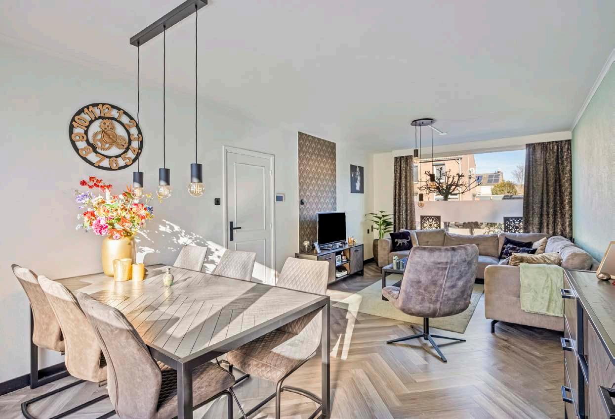 Eenmaal binnen ervaar je de rustige en lichte sfeer die deze woning kenmerkt. De hal met toegang tot het toilet en de trapopgang brengt je naar de woonkamer, die dankzij de grote raampartijen een fijne lichtinval heeft. Hier geniet je van vloerverwarming, wat vooral in de wintermaanden zorgt voor extra comfort.