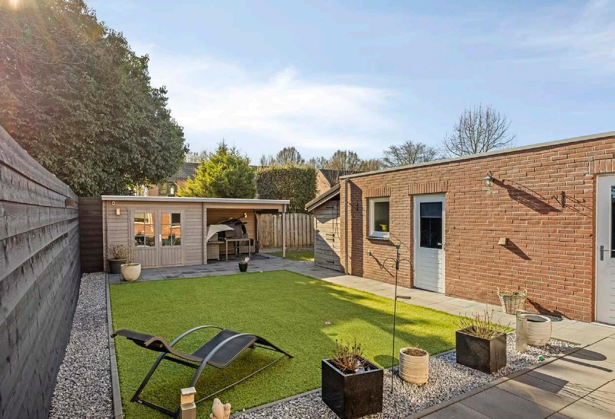 De tuin is gunstig gelegen op het zuiden, wat betekent dat je hier vrijwel de hele dag van de zon kunt genieten. Of je nu graag tuinliefhebber bent, ruimte zoekt voor kinderen om te spelen of gewoon wil relaxen, deze tuin heeft het allemaal. Aan de achterzijde bevindt zich een praktische, aangebouwde berging met elektriciteit, ideaal om bijvoorbeeld fietsen te stallen.