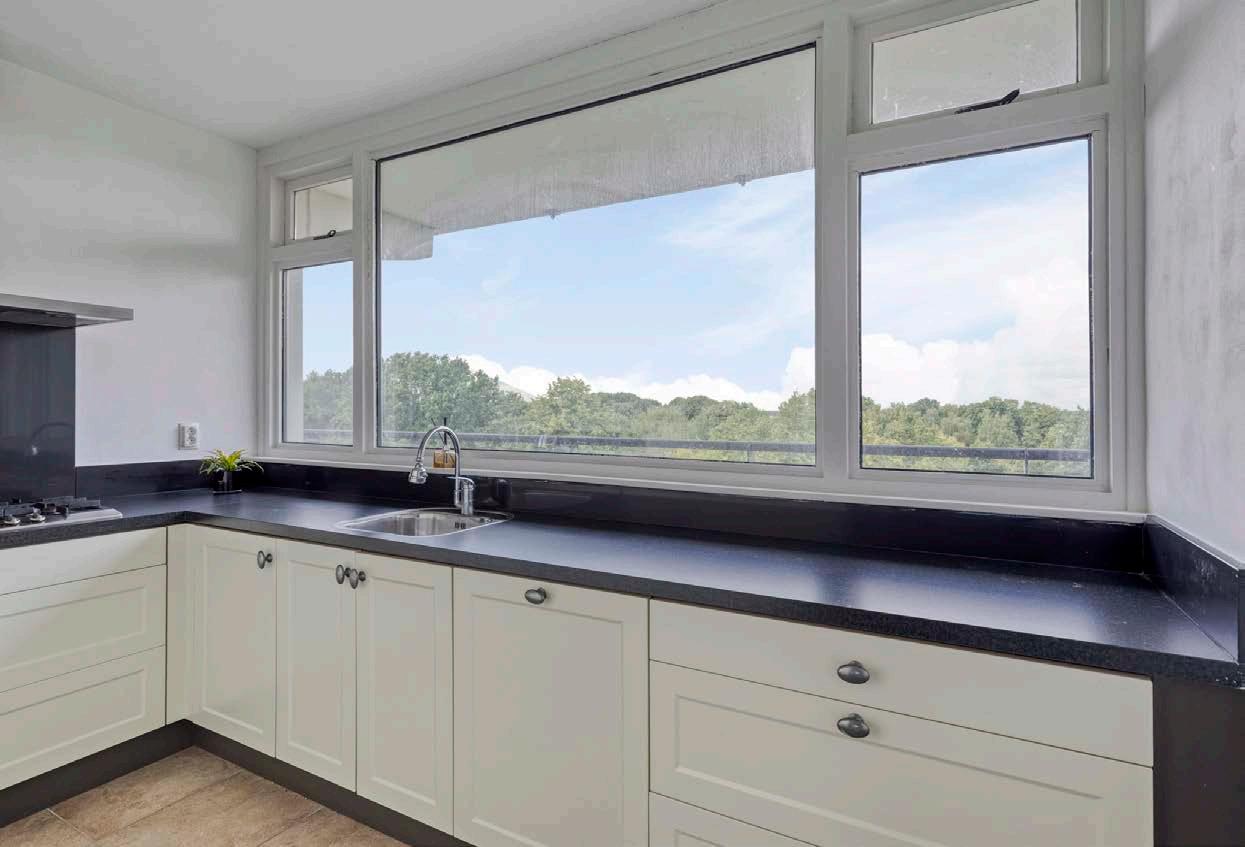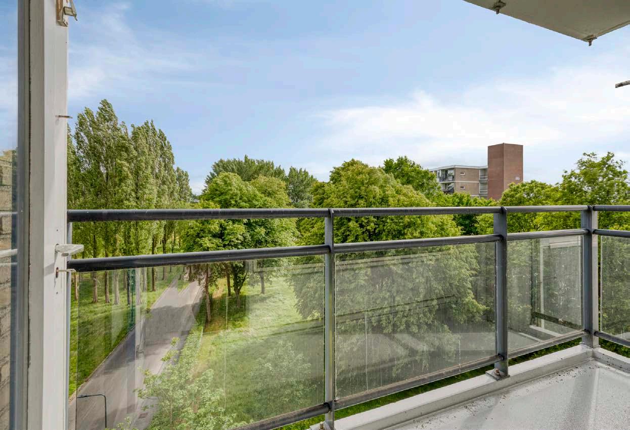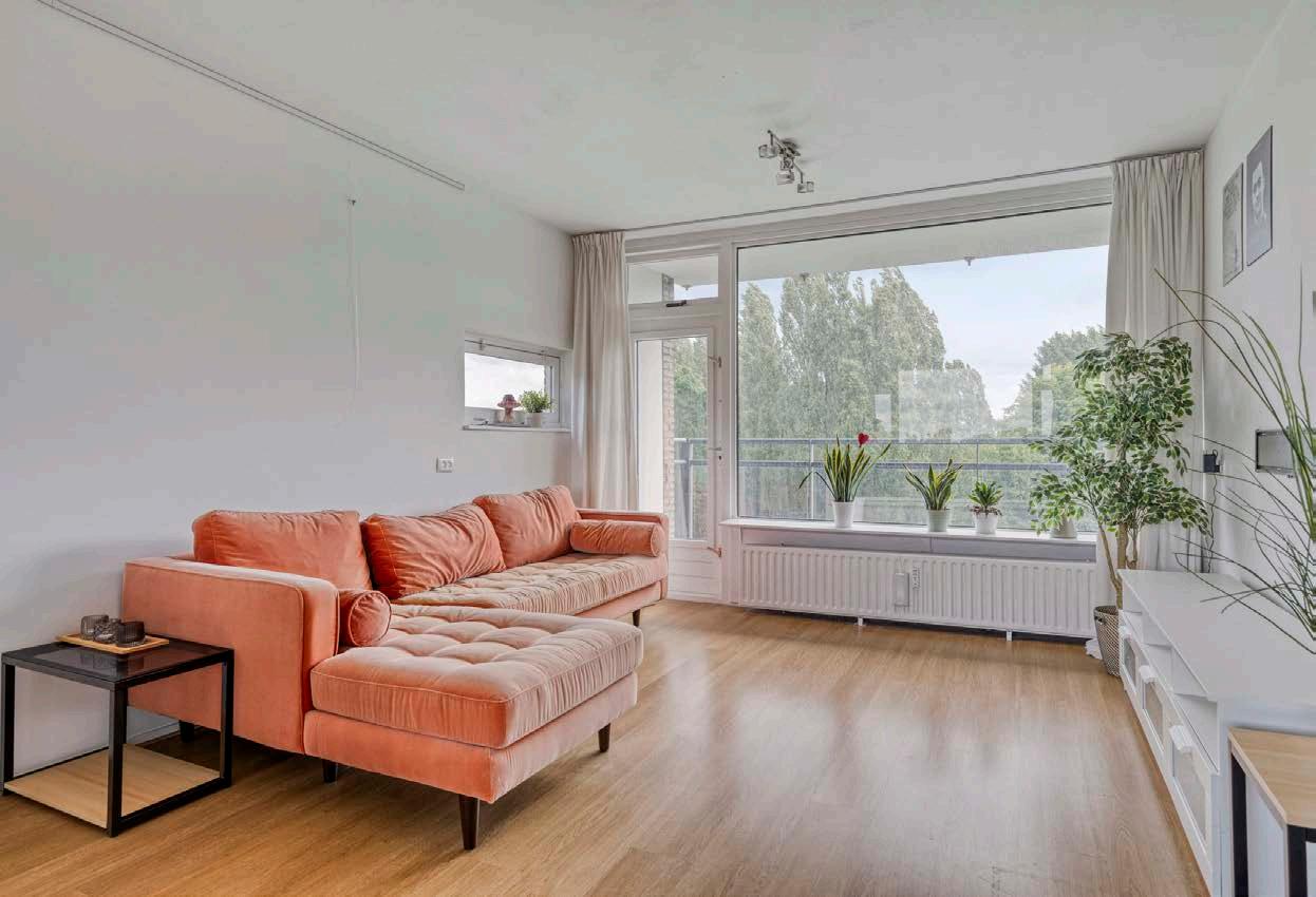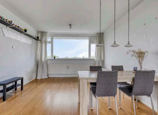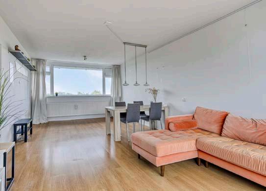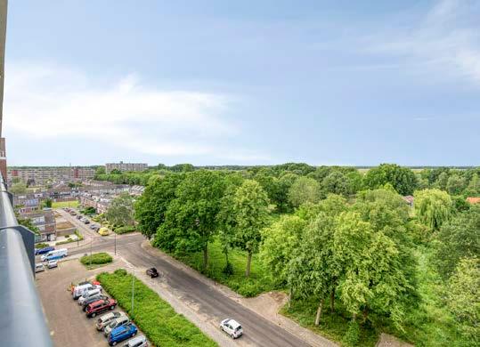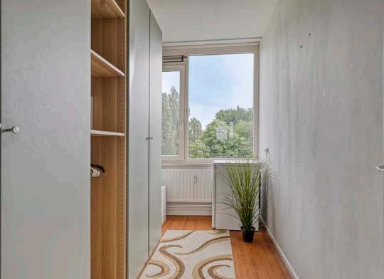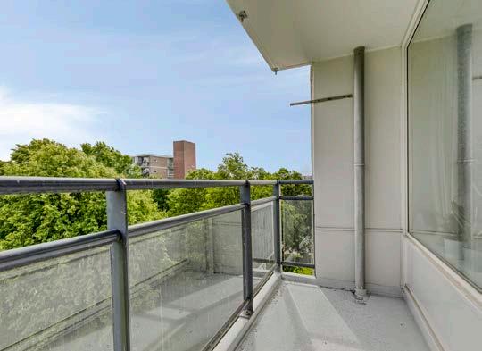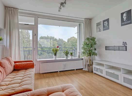 Het appartement zelf is gelegen op de zesde verdieping, wat een prachtig uitzicht geeft. Hang jouw jas op in de praktische hal en loop door naar de riante woonkamer. Hier oogt alles ruimtelijk, mede dankzij de grote ramen die het licht vriendelijk naar binnen laten stromen. Ook is hier de toegang tot het balkon wat door de ligging op het Zuiden heerlijk zonnig is. Hier kun je in alle rust genieten van een goede kop koffie in de ochtendzon of een glas wijn terwijl de zon ondergaat. Dankzij het vrije uitzicht voelt het als jouw eigen geheime plekje boven de stad – ideaal om even helemaal op te laden.