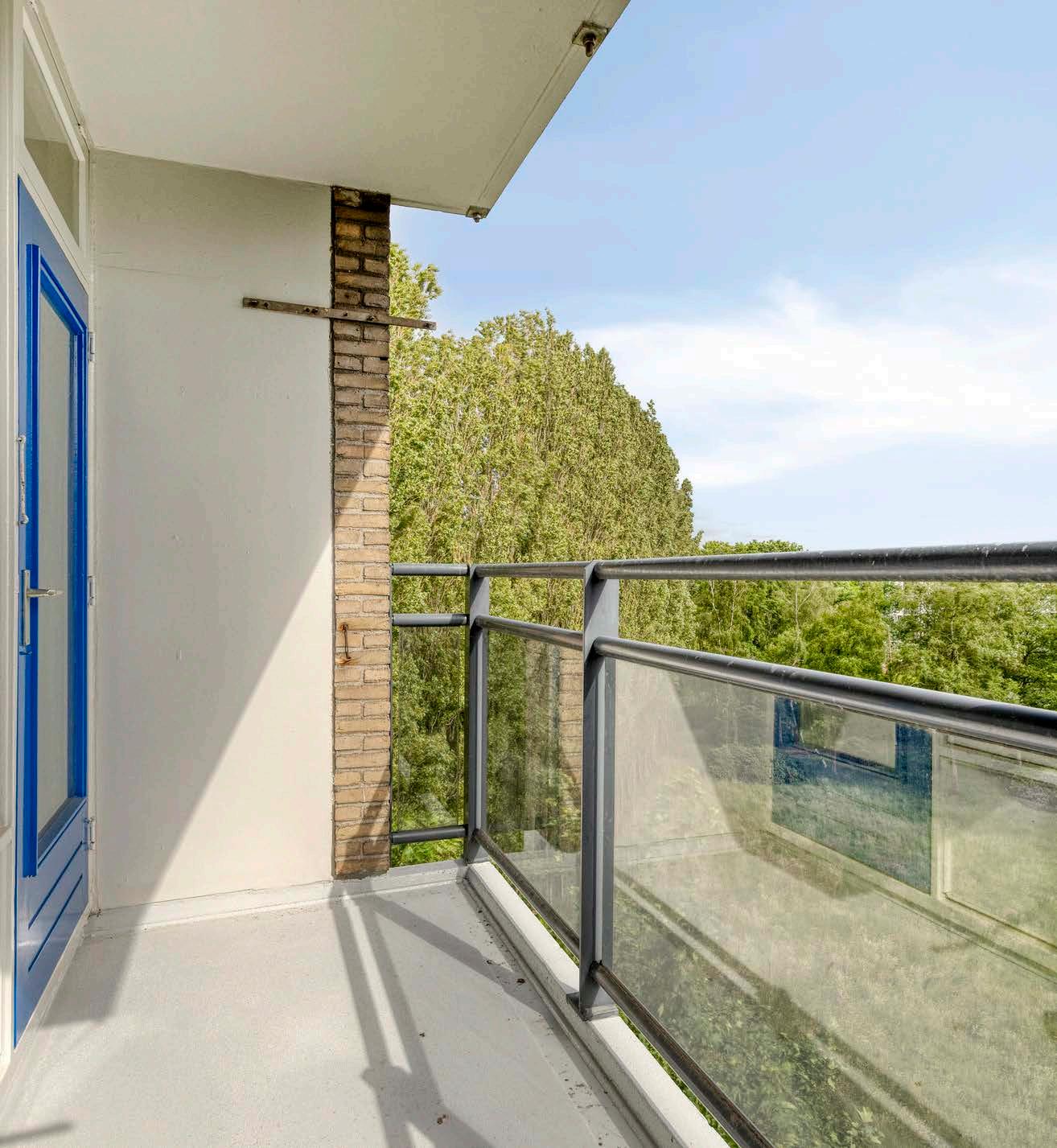 Het balkon op het Zuiden is heerlijk zonnig. Hier kun je in alle rust genieten van een goede kop koffie in de ochtendzon of een glas wijn terwijl de zon ondergaat. Dankzij het vrije uitzicht voelt het als jouw eigen geheime plekje boven de stad – ideaal om even helemaal op te laden.