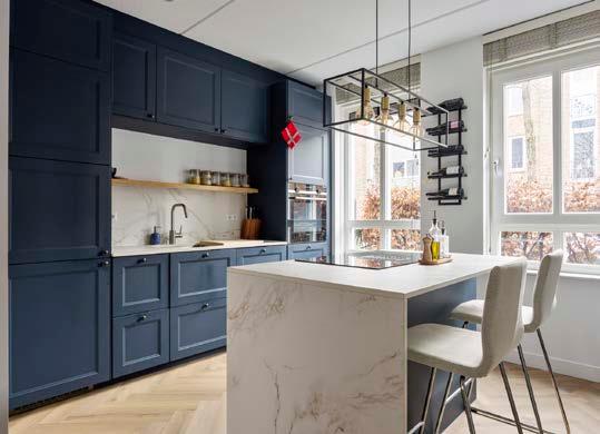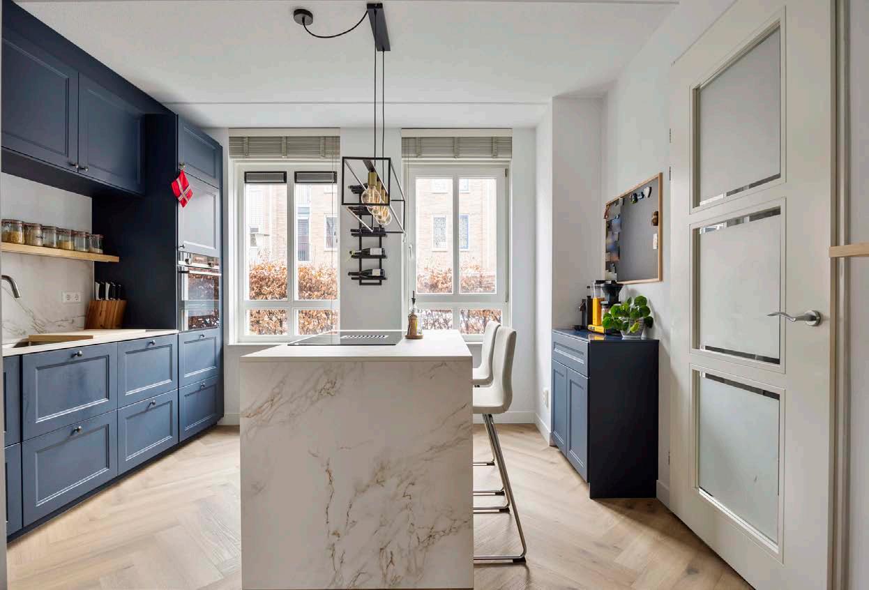 De open moderne keuken vormt een echte blikvanger binnen de woning. Dankzij de open opstelling staat u tijdens het koken altijd in verbinding met de woonkamer en de eethoek, wat zorgt voor een gezellige en sociale sfeer. Of u nu een uitgebreid diner bereidt of snel een maaltijd klaarmaakt, deze keuken combineert functionaliteit met een eigentijdse uitstraling. Het kookeiland neemt een centrale plaats in en biedt niet alleen extra werk- en bergruimte, maar fungeert ook als ontmoetingsplek binnen het huis. Hier kunt u ’s ochtends rustig ontbijten, een kop koffie drinken of gezellig aanschuiven terwijl er wordt gekookt. Het eiland versterkt het ruimtelijke gevoel en geeft de keuken een luxe, moderne uitstraling. keuken