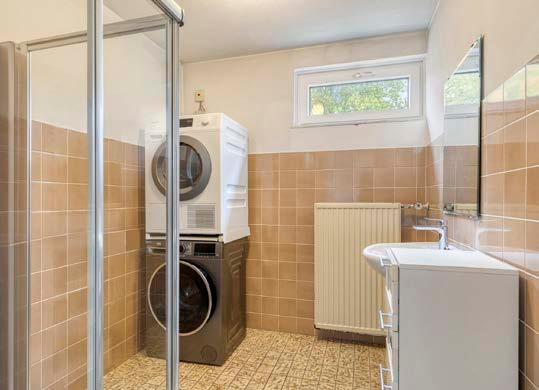 Boven bevindt zich de praktische badkamer met douchecabine, wastafel en witgoedaansluiting