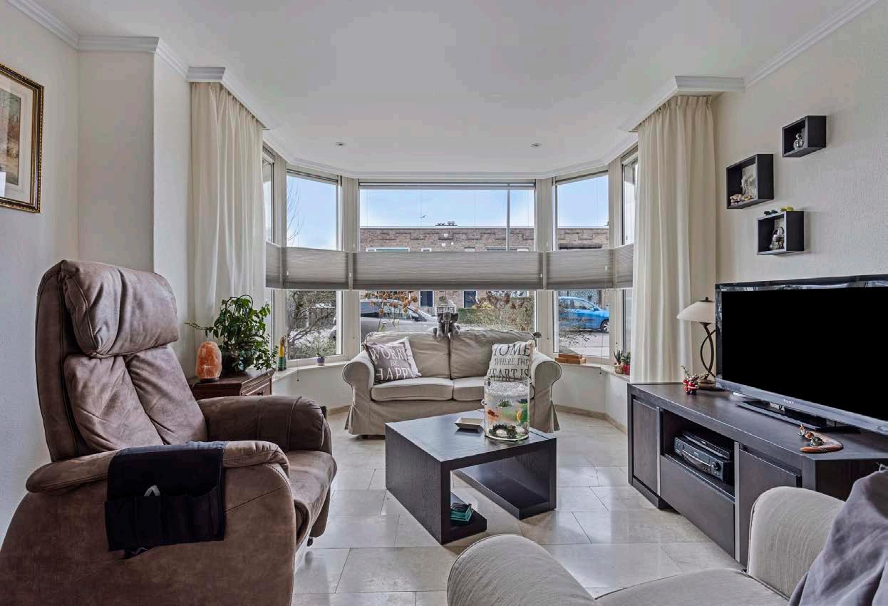 De woning is aan de voorzijde uitgebouwd met een prachtige erker, die niet alleen een esthetische meerwaarde biedt, maar ook zorgt voor een overvloed aan natuurlijk licht in de doorzon woonkamer. De marmeren vloer voegt een vleugje luxe toe, terwijl de sfeervolle gashaard een warm en gezellig middelpunt vormt voor familieavonden.