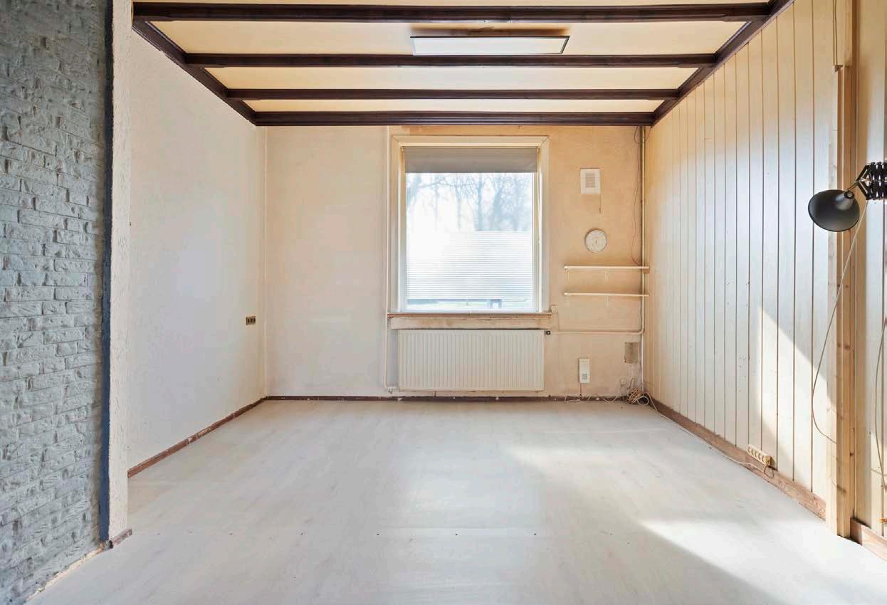 Op de begane grond bevindt zich een ruime woonkamer die met een beetje creativiteit helemaal naar jouw hand te zetten is. Denk bijvoorbeeld aan een gezellige zithoek, een eettafel waar iedereen kan aanschuiven én genoeg ruimte om persoonlijke accenten toe te voegen.