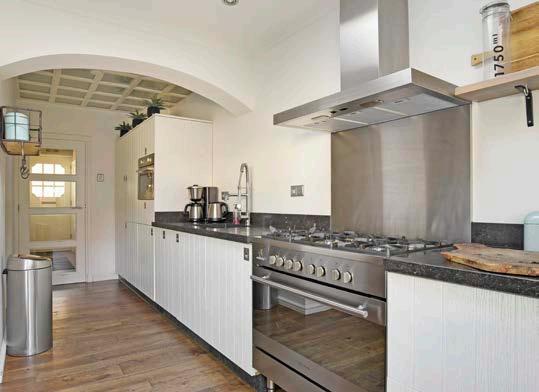 De leefkeuken bevindt zich aan de achterzijde. De massief houten keuken is voorzien van een Belgisch hardstenenblad en diverse inbouwapparatuur zoals; een 6-pitsgasfornuis, afzuigkap, combi oven magnetron, een koel-vriescombinatie en een vaat wasser. De gehele begane grond is voorzien van massief- eikenhoutenvloerdelen.