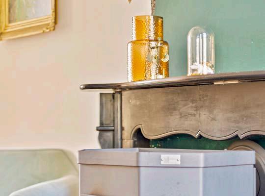 Centraal in de living vormt de sfeervolle houthaard een uitnodigend middelpunt, perfect voor lange avonden in een warme ambiance. Deze wordt gecomplementeerd door een indrukwekkende, authentieke zwart marmeren schouw, die niet alleen functioneel is maar ook dient als een karakteristiek stijlelement.