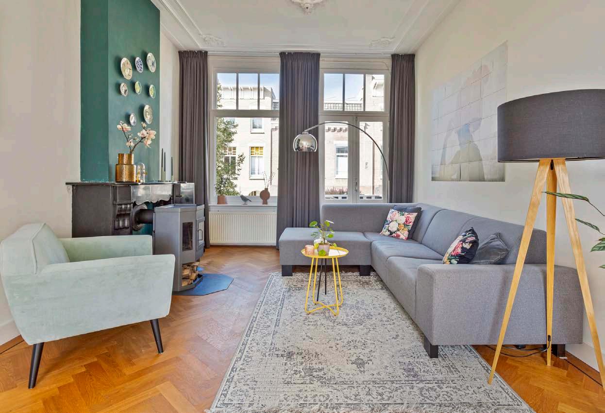 De fraaie living ademt een harmonieuze combinatie van klassieke elegantie en warme gezelligheid.