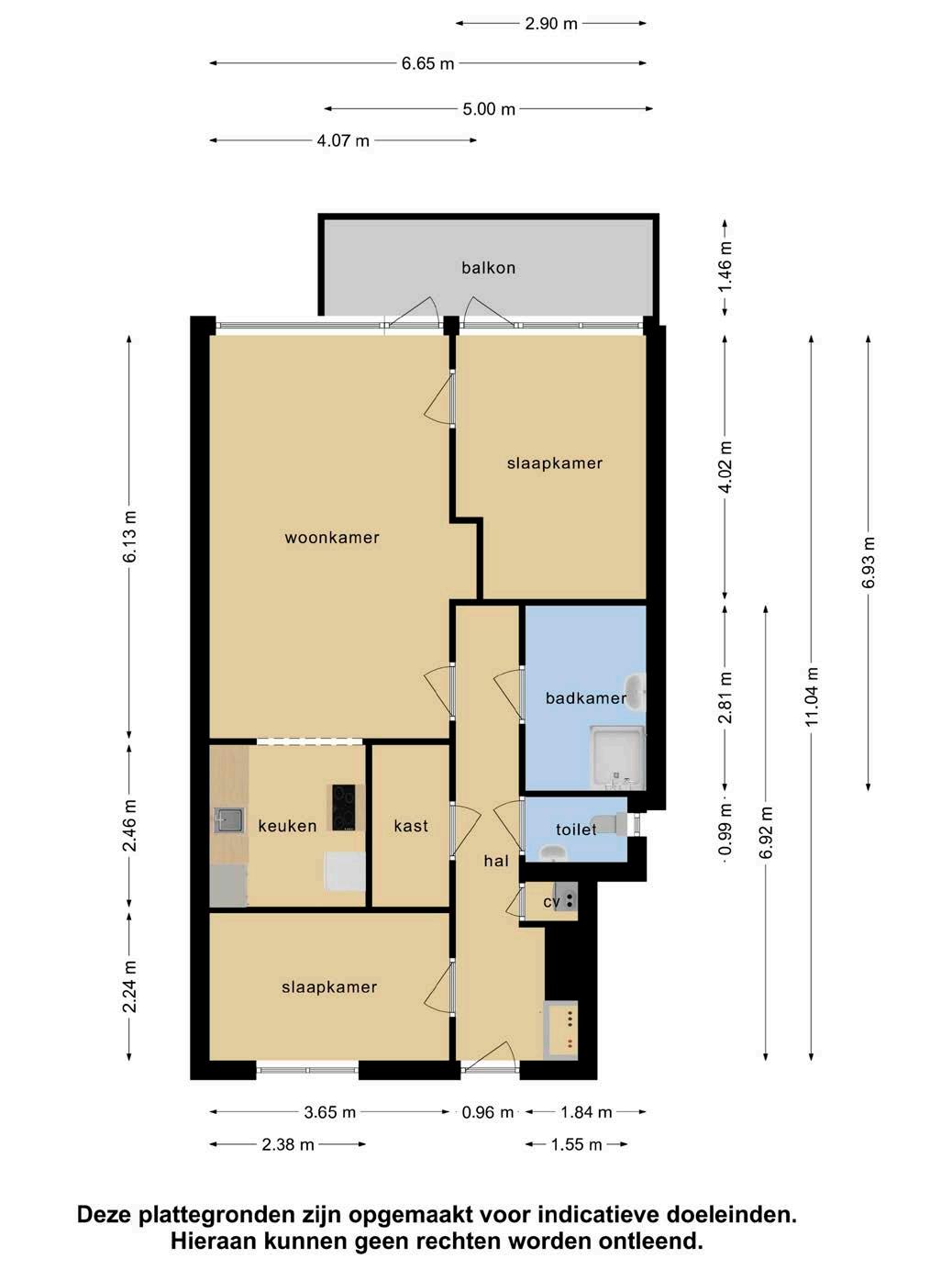 Er zijn twee slaapkamers aanwezig, waarvan de ene kamer toegankelijk is vanuit de woonkamer en de andere kamer aan de voorzijde van het appartement ligt. Hierdoor zijn de kamers in te richten als slaap- en werkkamer bijvoorbeeld. Stem de vertrekken helemaal af op jouw woonwensen.