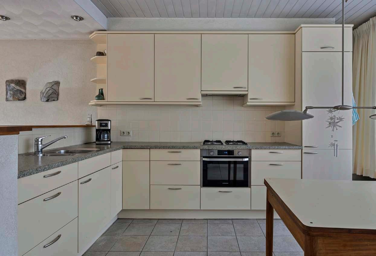De open keuken is functioneel, maar biedt volop mogelijkheden om naar eigen smaak te vernieuwen en optimaal in te richten.