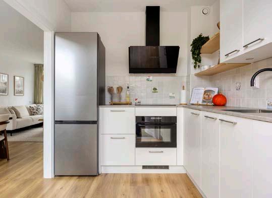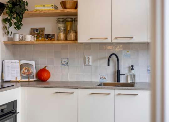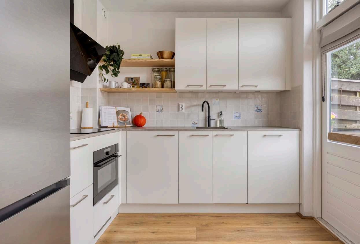 De nette, open keuken bevindt zich aan de achterzijde van het huis en biedt niet alleen veel werk- en opbergruimte, maar ook een stijlvolle uitstraling. Denk aan een modern keukenblok met strakke lijnen en alle benodigde inbouwapparatuur, waaronder een vaatwasser, een koelkast en een oven. Ideaal voor doordeweekse maaltijden of het uitproberen van nieuwe recepten in het weekend. Via de keukendeur stap je direct de achtertuin in –perfect om ‘s ochtends even koffie te drinken in de buitenlucht.