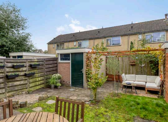 De tuin, gelegen op het noordwesten, heeft een gunstige ligging voor wie houdt van de middag- en avondzon. Hier kun je genieten van een lekkere barbecue of simpelweg ontspannen op het terras met een goed boek. De tuin is onderhoudsvriendelijk ingericht, met een mix van bestrating en groen, zodat je meer tijd overhoudt om te genieten dan om te tuinieren. Voor gezinnen is deze tuin een veilige plek waar de kinderen vrij kunnen spelen. Via de achterom kun je bovendien gemakkelijk met de fiets of de kliko’s bij de tuin komen. En laten we het praktische schuurtje niet vergeten – perfect om tuingereedschap, fietsen of sportspullen netjes op te bergen.