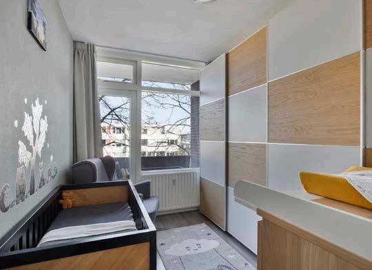 Het fijne aan dit appartement is dat de kamers vrij ruim zijn. De indeling van de ruimtes zijn ook erg fijn en logisch. Doordat het een tussen appartement is, houdt de woning ook makkelijker warmte vast. Het complex heeft een brede lift.