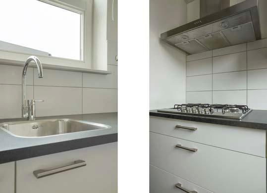 De nette keuken is voorzien van een lichte kleurstelling en uitgerust met diverse inbouwapparatuur, te noemen: Een gaskookplaat, afzuigkap, combioven, vaatwasser en vriezer en een koelkast. Je kunt ervoor kiezen om een leuke eetbar te plaatsen waar je ´s ochtends kunt ontbijten.