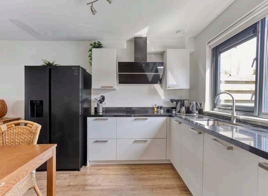 Aan de achterzijde van de woning ligt de moderne open keuken uit 2021. Deze is strak afgewerkt en heeft alles wat je nodig hebt: een inductiekookplaat, combi-oven en vaatwasser.