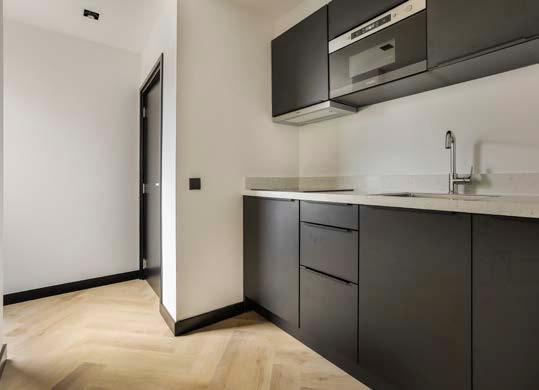 Aansluitend aan het eetgedeelte vind je de luxe open keuken, geplaatst in een rechte wandopstelling. Je beschikt hier over voldoende kast- en werkruimte en daarnaast ben je hier voorzien van alle denkbare inbouwapparatuur.