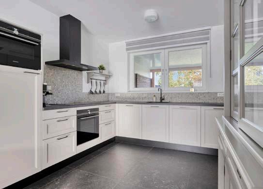 De strak afgewerkte moderne keuken is een plaatje om te zien: voorzien van hoogwaardige apparatuur, ruime werkbladen en perfect ingedeeld. Of je nu uitgebreid wilt koken of snel een kop koffie wilt zetten, alles ligt binnen handbereik. Het leven is hier zo comfortabel en praktisch als het maar zijn kan.