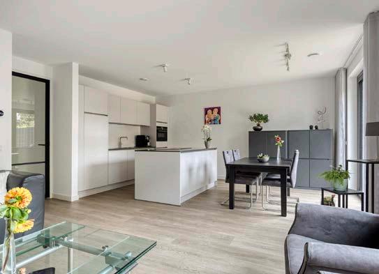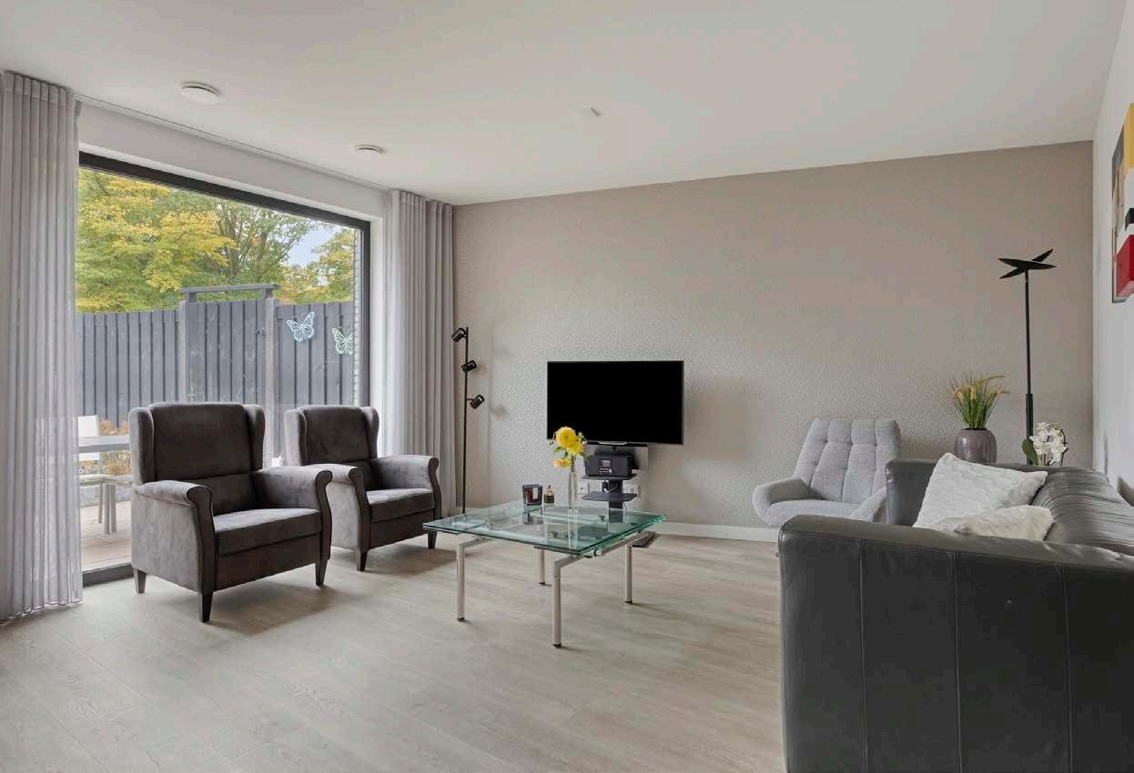 De woonkamer is zonder meer het stralende middelpunt van deze woning. Dankzij de royale raampartijen vult de ruimte zich de hele dag door met een zachte, natuurlijke lichtinval. Terwijl je op de comfortabele bank zit met je favoriete boek of geniet van een lange lunch met vrienden, kijk je uit op de zonnige achtertuin. De naadloze overgang tussen de woonkamer en de tuin versterkt het gevoel van licht en lucht.