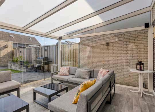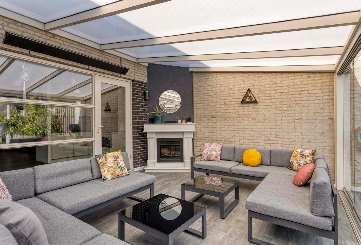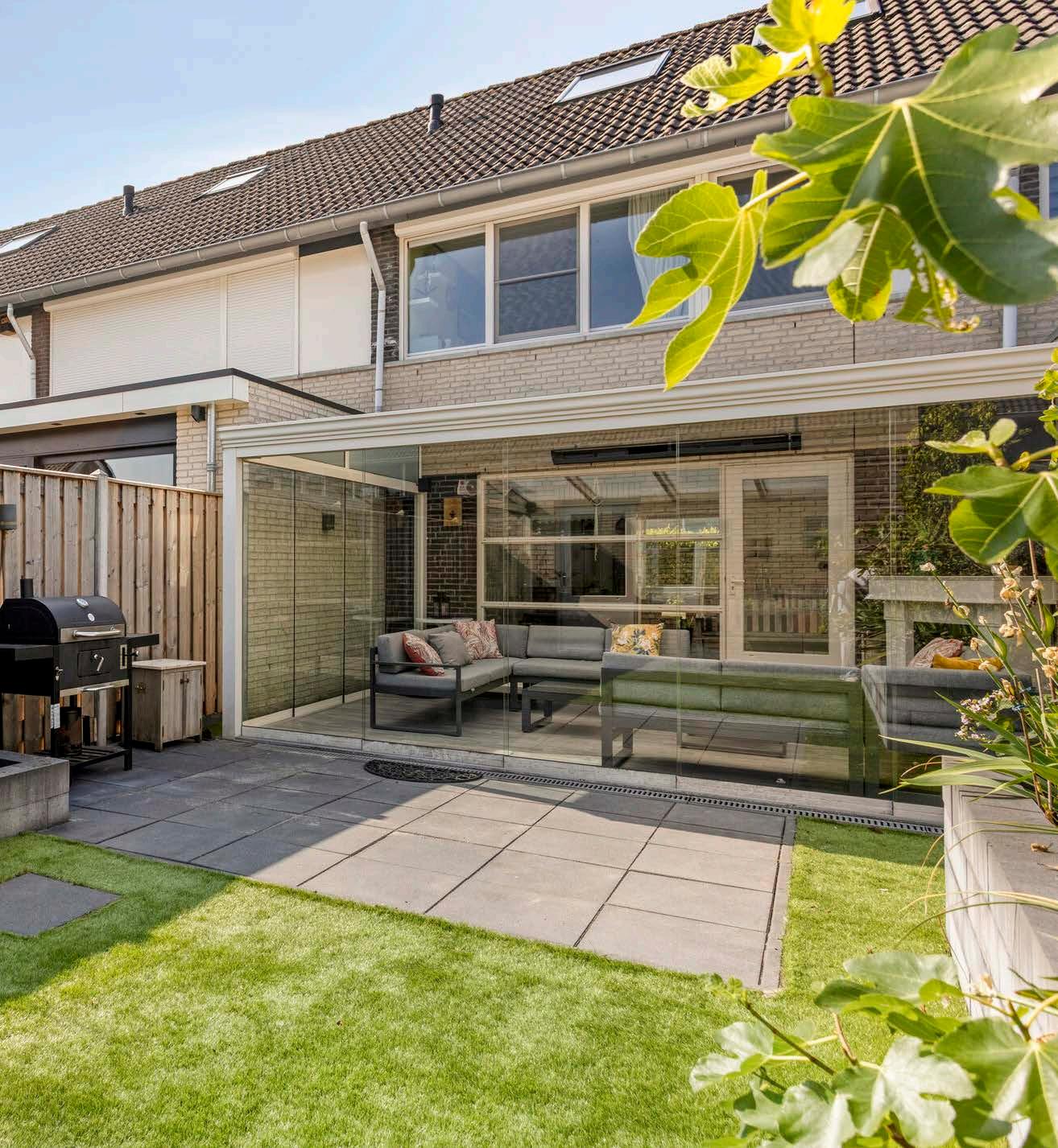 Grenzend aan de woonkamer vind je de eyecatcher van de woning: de luxe tuinkamer. Stel je voor, het is zaterdagochtend en de zonnestralen dansen zachtjes op tafel terwijl je geniet van een vers gezet kopje koffie. Dankzij de glazen wanden – die je volledig kunt openen – is dit dé plek waar binnen en buiten naadloos in elkaar overgaan. Een perfecte setting voor gezellige borrels, rustige leesmomentjes of zelfs een creatieve werkplek.