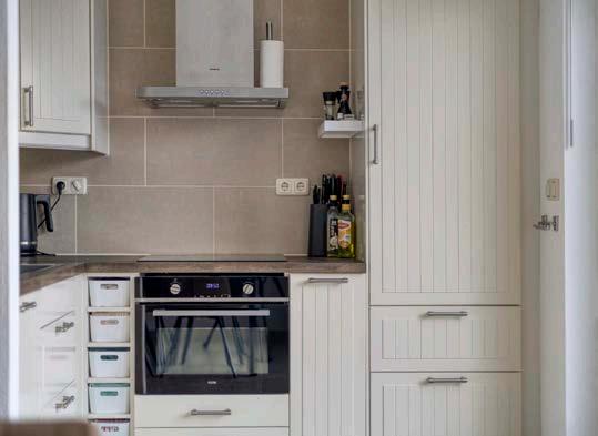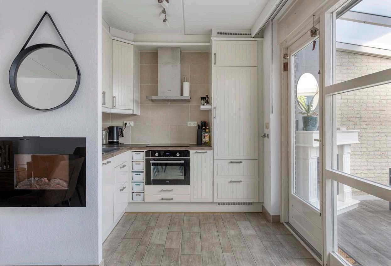 De open hoekkeuken is een ware blikvanger en zal iedere keukenliefhebber doen glimlachen. Met een strak en modern design – compleet met kookplaat, combi-oven, vaatwasser, koelkast en een stijlvolle afzuigkap – schreeuwt dit: “Kom koken!” Vanaf de keuken wandel je zo door naar de luxe tuinkamer.