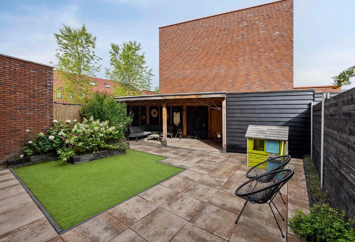 De woonkamer voelt open en licht dankzij de grote ramen die uitkijken op de fijne achtertuin. Hier is genoeg ruimte voor een gezellige zithoek én een eettafel waar het hele gezin samenkomt.