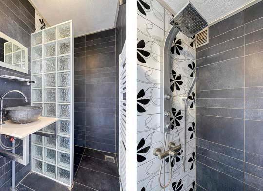 De badkamer is knus en compleet uitgevoerd met een meubel met een waskom, een design-radiator en een fijne inloopdouche. Klein, maar je hebt alles wat je nodig hebt.