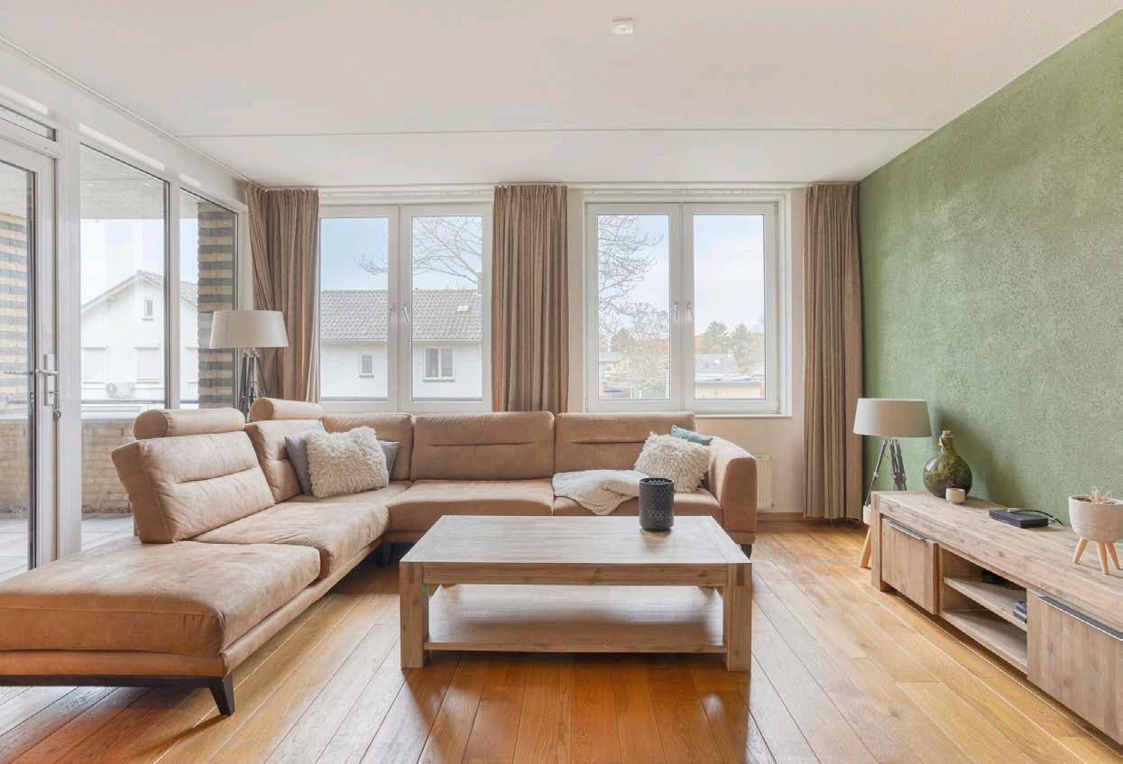 Wanneer je dit appartement binnenkomt, word je meteen verwelkomd door de royale woonkamer. Dit is een heerlijke plek om te ontspannen, te werken of vrienden te ontvangen. De grote raampartijen zorgen voor veel natuurlijk licht binnen, iets wat direct voor een frisse en uitnodigende sfeer zorgt. Hier kun je letterlijk de hele dag door genieten van de ruimte en het daglicht – van je gezellige ontbijt in de ochtend tot de zonsondergang in de avond.