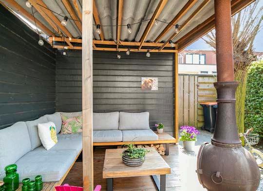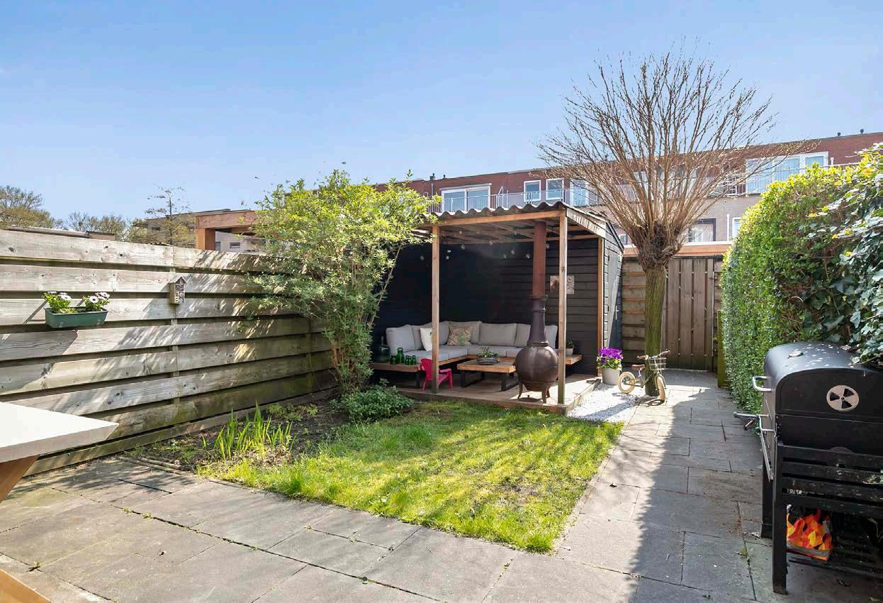 Vanuit de woonkamer stap je zo de verzorgde achtertuin in. Deze is gelegen op het zonnige zuiden, waardoor je hier optimaal van het mooie weer kunt genieten. De tuin is aangelegd met bestrating, gazon en een gezellige overkapping.