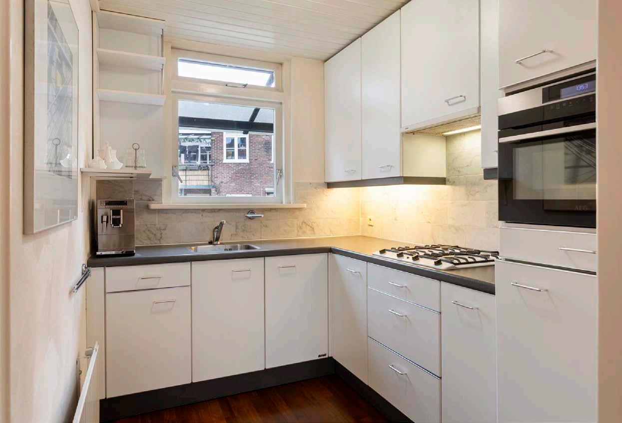 De dichte keuken is een praktische en comfortabele ruimte waar functionaliteit en kookplezier samenkomen. Doordat de keuken afsluitbaar is van de woonkamer, geniet u van extra rust en privacy tijdens het koken. Geuren en geluiden blijven hierdoor netjes in de keuken, terwijl de rest van de woning een serene uitstraling behoudt.
