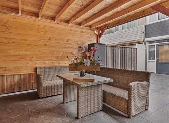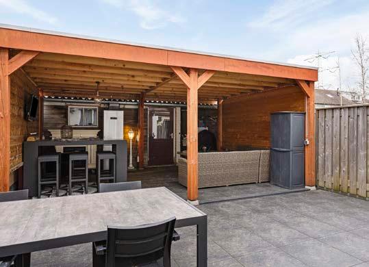 Via de tuindeur in de keuken is de achtertuin op het noordwesten te bereiken. De tuin is recentelijk vernieuwd en is voorzien van een houten berging, veranda en een achterom.